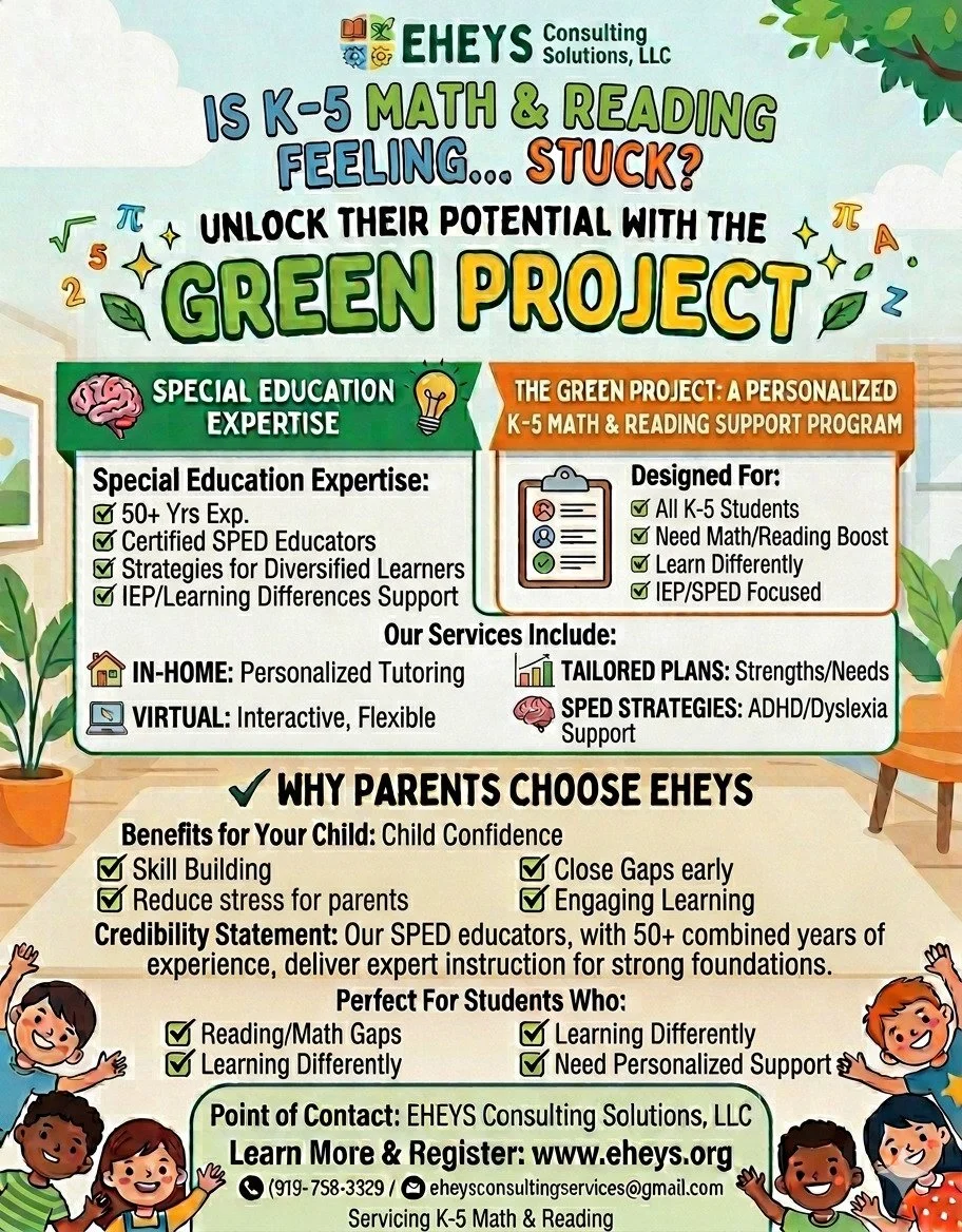 The Green Project is designed to help elementary students strengthen foundational math and reading skills through personalized instruction and special education-informed strategies.